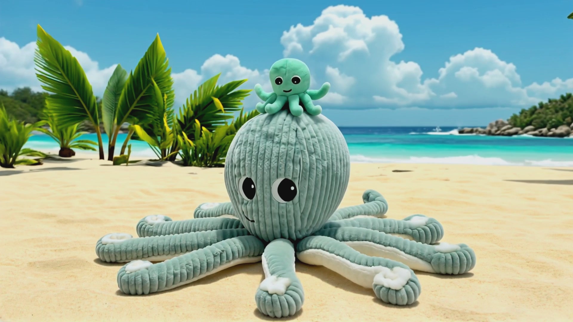 Peluche pieuvre Filou maman et son bébé bleu aqua - Les Ptipotos