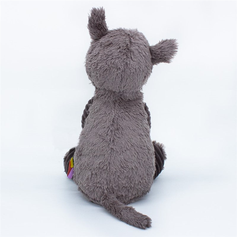 Cette peluche rhinocéros grise de 35 cm est en velours côtelé et soft tout doux.