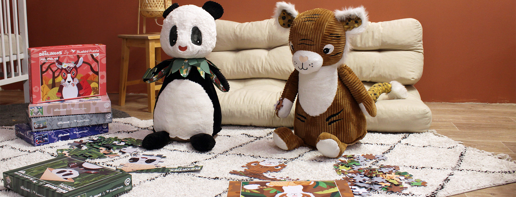 Découvre les peluches et doudous, jouets d'éveil pour bébés, protèges carnets de santé, attache-sucettes, les cartables et trousses d'école ainsi que tous nos produits pour le voyage.