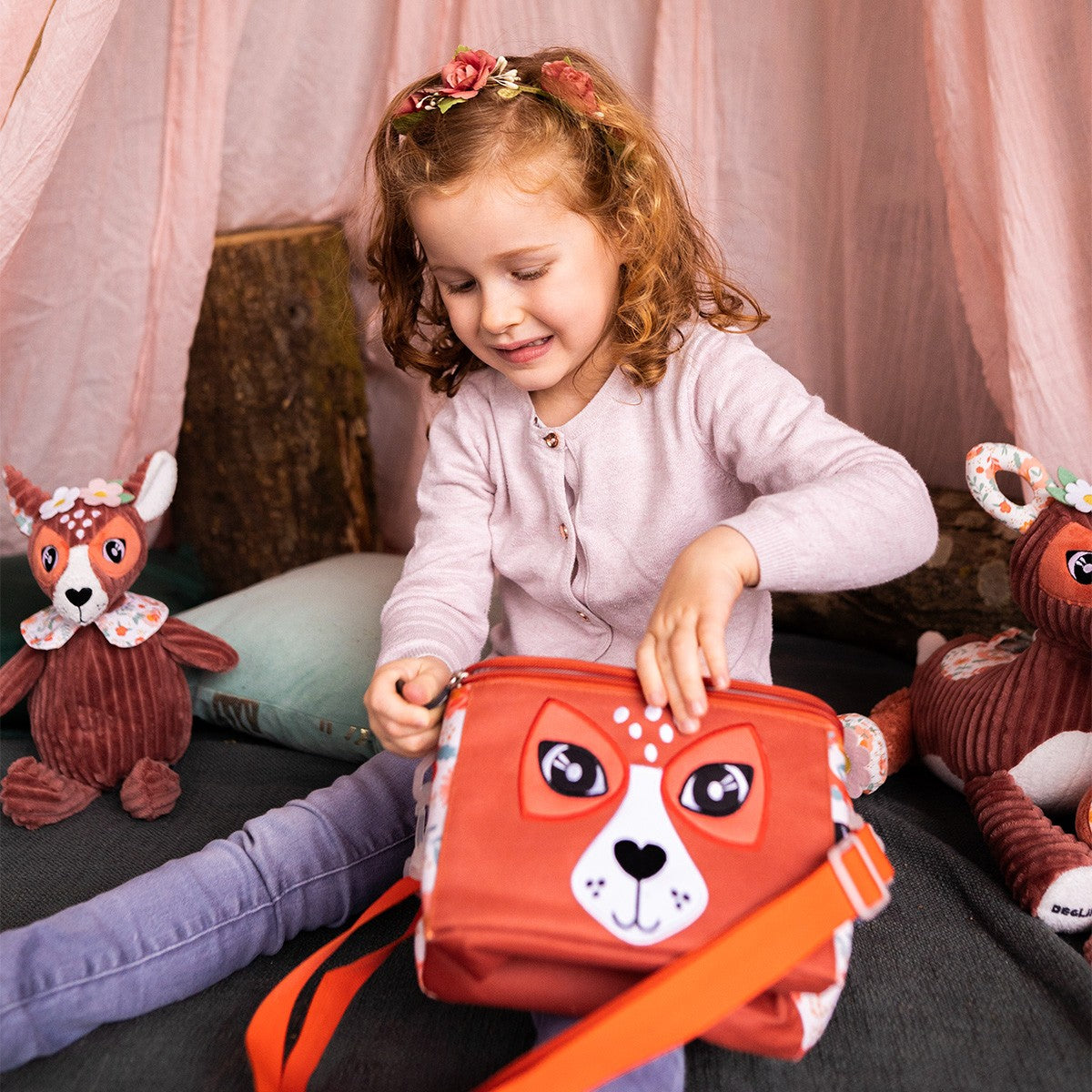 A l'effigie de Mélimélos la biche, le sac isotherme enfant est rouge terracotta et coloré.
