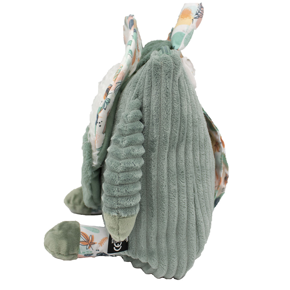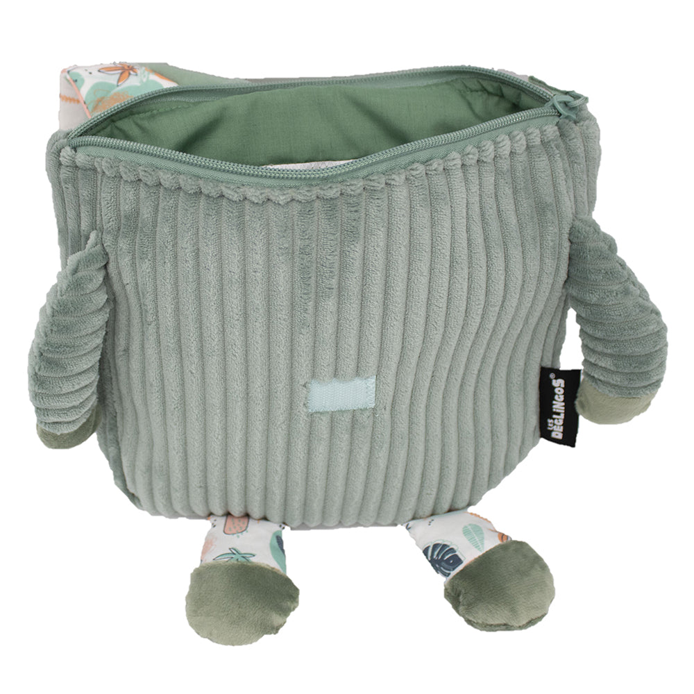 Vêtu de son plus beau velours côtelé, ce sac à dos vert Chillos le paresseux accompagnera les petits en crèche ou dans leurs premières balades au parc.